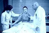 Doctor checking treatment patient on bed in hospital. Doctor treatment healthcare concept.