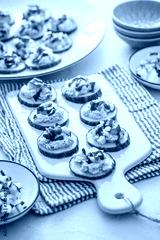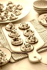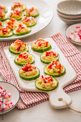 Cucumber appetizers with tuna and salmon spread with radish, fingerfood, healthy bits