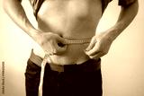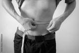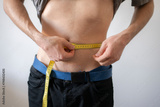 Man Measures Waist Circumference With Yellow Tape During Fitness Check