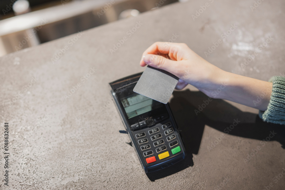 Customer Completing a Credit Card Transaction at a Retail Checkout