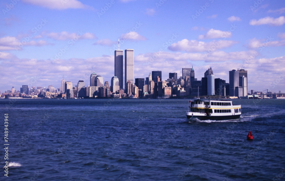 Downtown Manhattan Skyline with World Trade Center Twin Towers in New York City during early 1990s