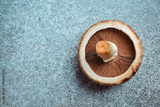 Top view of fresh mushrooms close-up, macro photo. Creative advertising photo.