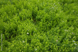 Blooming White Nigella sativa flowers in the field. Top view Texture background