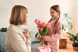 Family at home. Mom daughter and granddaughter at home.