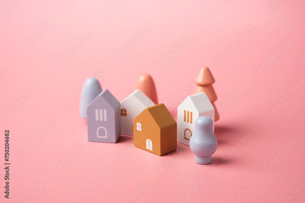 A town of houses and trees in beautiful colors. Investments in real estate. Buy a house.