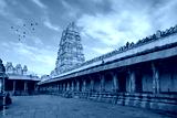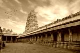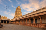 Medieval architecture stone structure with archeological ruins of Virupaksha temple at Hampi, Karnataka, India.