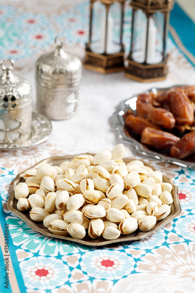 Pistachio Nuts with Dates Fruit for Takjil Ramadan Breaking the Fast
