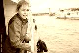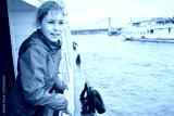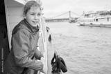 Girl in red jacket at railing on pleasure boat deck