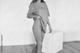 Stylish Woman Rocking Oversized Shirt: Mock-Up Studio Session