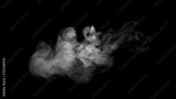 Collection of close-up shots of abstract white steam or smoke. White cloudiness from moisture spray Isolated on a black background.