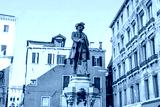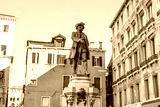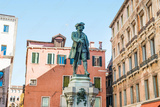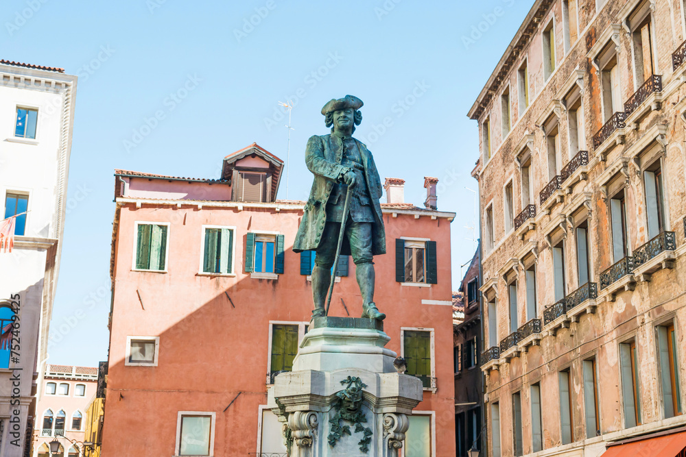 Monument of Carlo Goldoni at square with old buildings in Venice, Italy