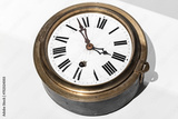 Antique ships chronometer with Roman numerals on a cracked white enamel dial