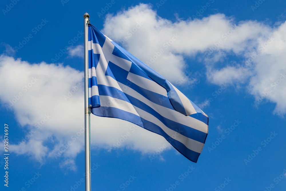 Flag of Greece on flagpole waving in the wind