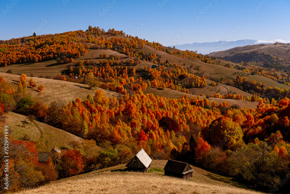 beautiful autumn landscapes in the Romanian mountains, Fantanele village area, Sibiu county, Cindrel mountains, Romania