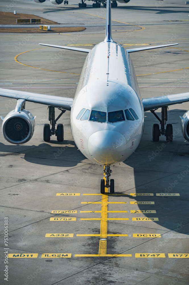Aircraft docking into the parking bay with multiple stop bar on ground at airfield