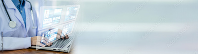 Doctor using computer backup data on Cloud Computer technology and storage online for computer, computer backup storage data Internet technology backup online document, backup data concept