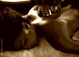 Massage, relax and wellness with black woman at spa on bed or table for luxury pamper treatment. Beauty, peace and therapy with back of young customer at resort or salon for holistic healing closeup