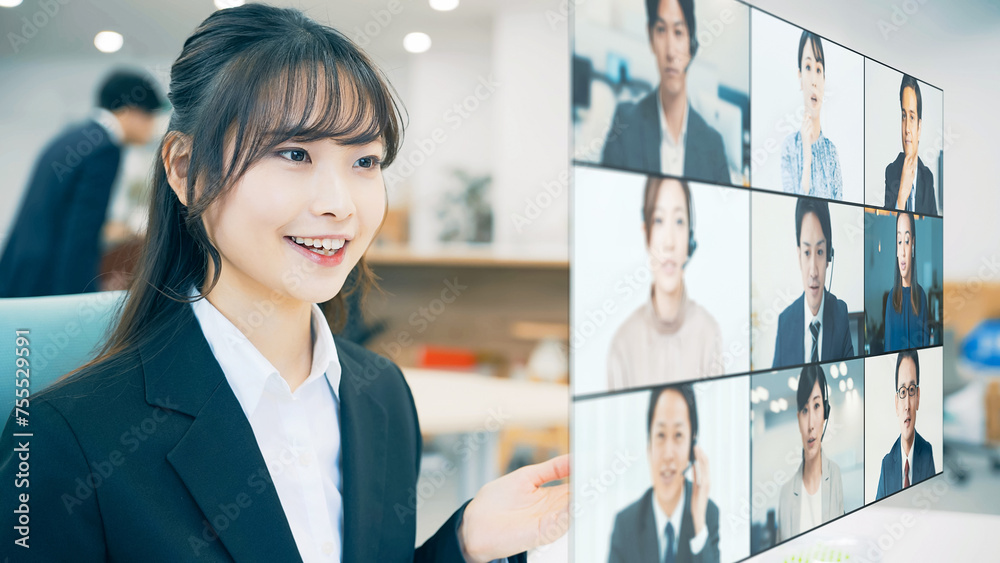 ビデオ会議に参加する女性