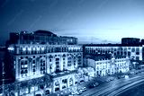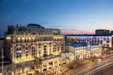 (long exposure) Tverskaya street (main street) of Moscow. Ritz-Carlton hotel at evening