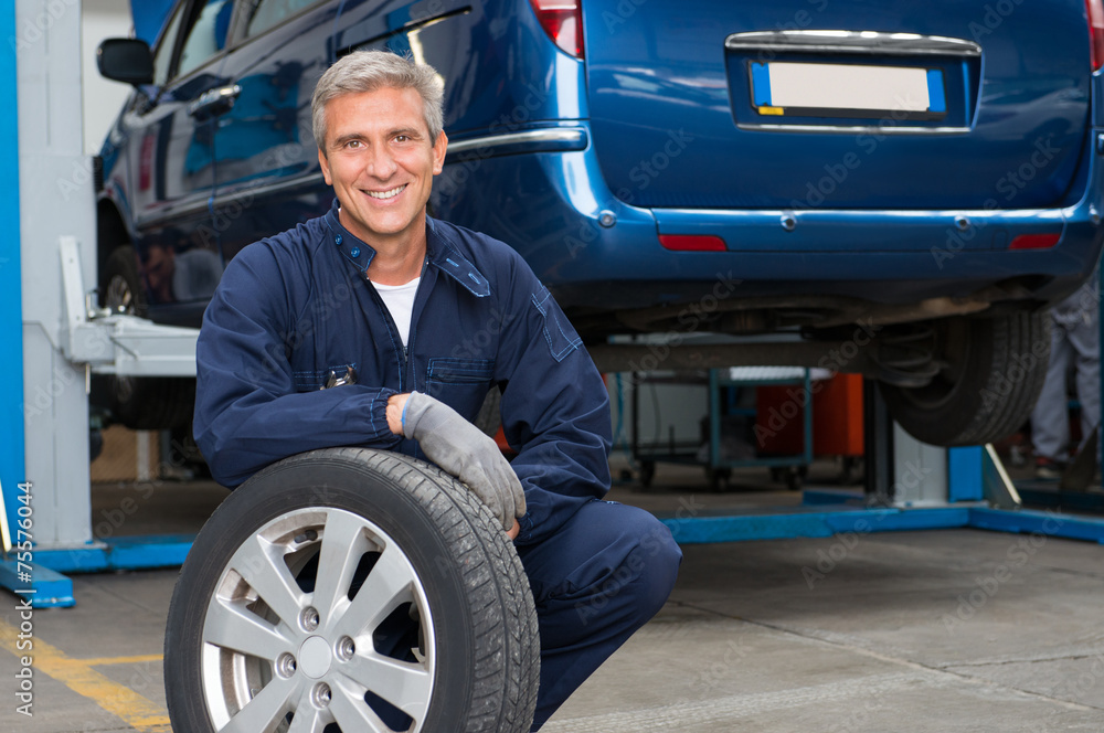 Tyre Dealer Holding A Tire