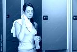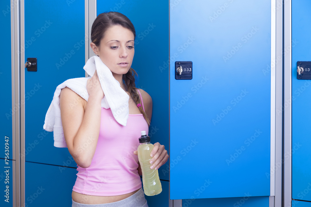 Fitness woman resting in dressing room