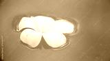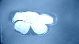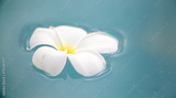 A Plumeria flower floats on the water in a pond. White tropical frangipani flower. Tropical landscape of beautiful plants and flowers. The concept of calm and tranquility.