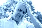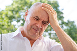 senior, mature man 50-55 years old holds on to head, close up male face with facial expression suffering, Migraine, severe headache, Cervical osteochondrosis, Tension or stress