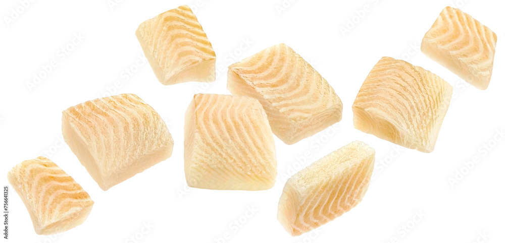 Flounder fish fillet pieces isolated on white background