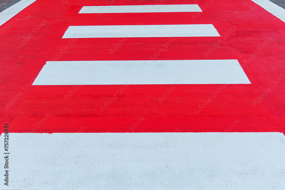 Red and white pedestrian crossing,Red and white crosswalk on asphalt road