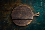 Kitchen cutting board, top view, free space for your text.