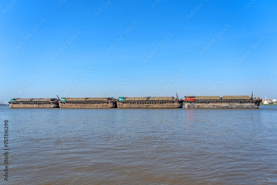 Barge with bulk cargo soil transportation trailer row river