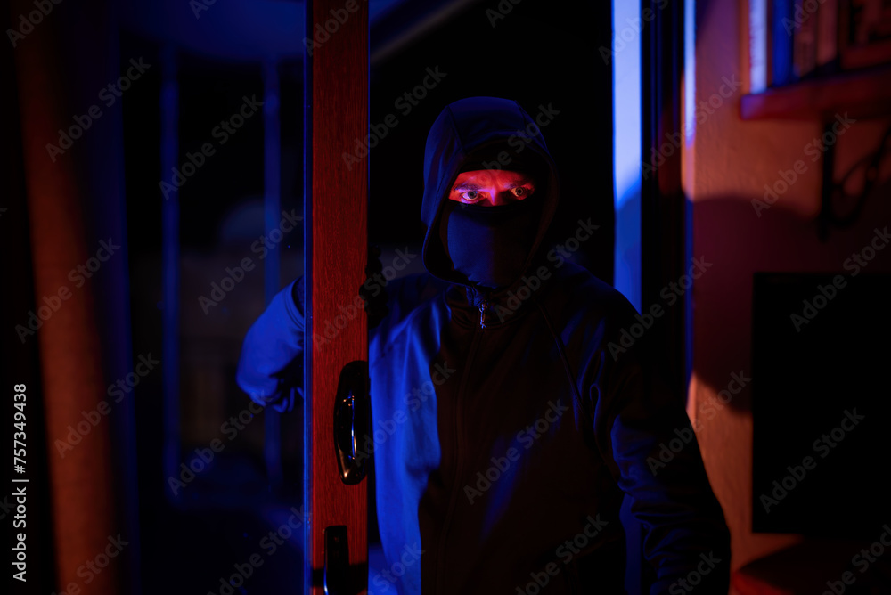 The thief breaks into the house through the balcony.
