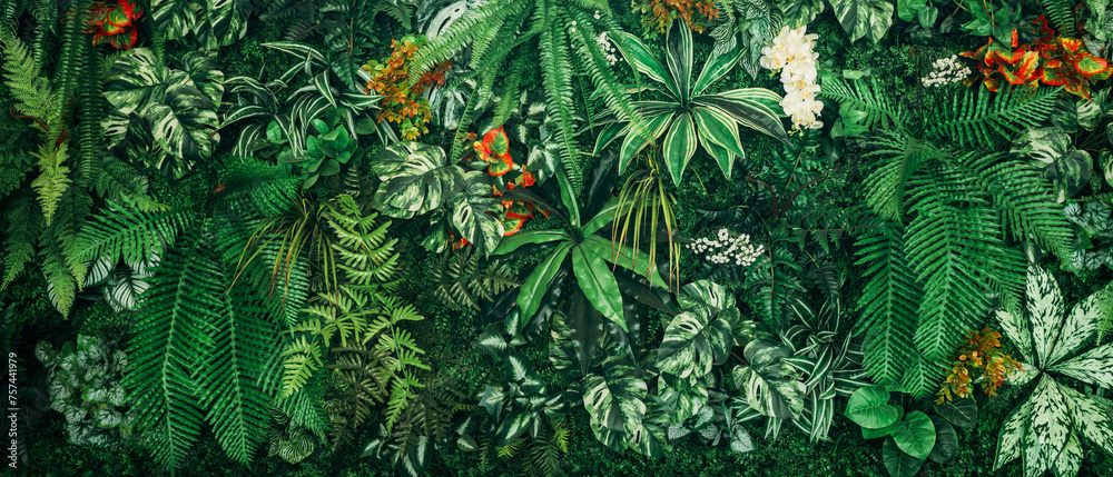 Close up group of background green leaves texture and Abstract Nature Background. Lush Foliage Textures. Exotic Greenery and Botanical Patterns..