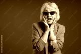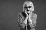 Stylish Senior Lady in Shock with Hands on Cheeks