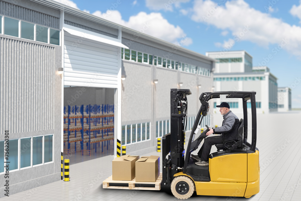 Forklift Operator Moving Boxes at a Logistics Warehouse Facility