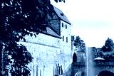 fountain in castle courtyard, ruins of Filbel Fortress Ancient European medieval buildings Bad Vilbel, Showcasing attractions for tourists interested, Cultural Tourism in Hesse