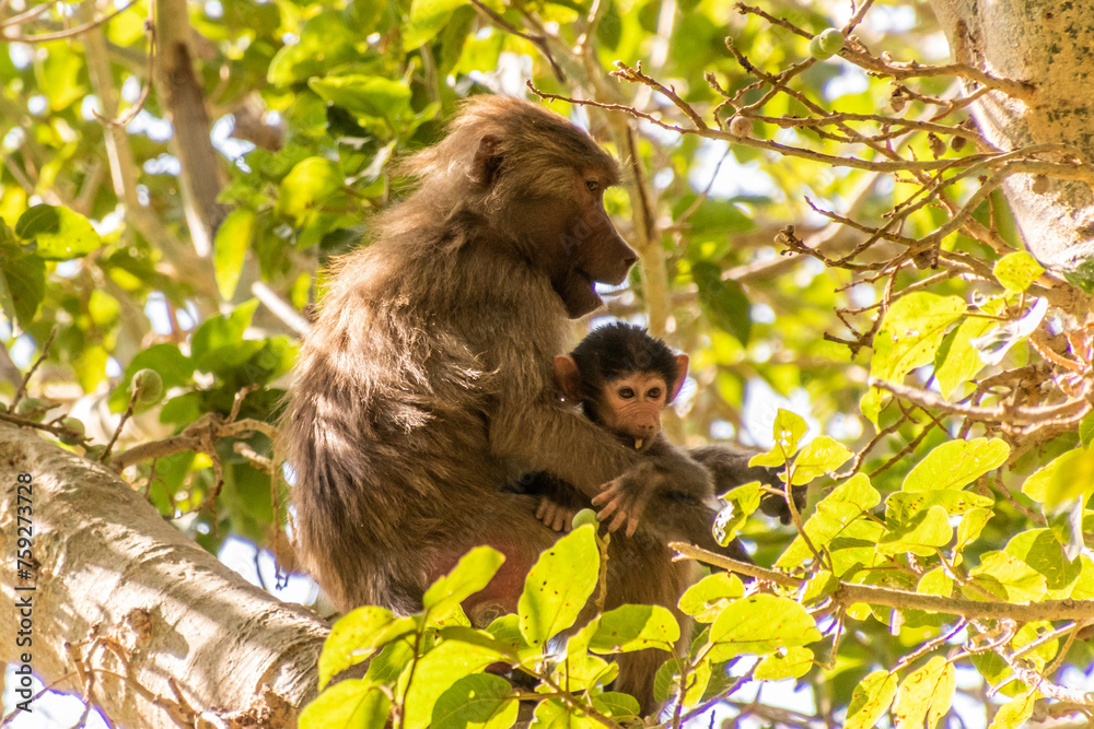 Hamadryas Baboon (Papio hamadryas) on a tree near Thee Ain ( Dhi Ayn) village, Saudi Arabia