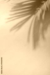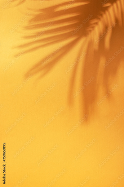 Palm leaf shadow on yellow background. Minimal summer exotic concept with copy space