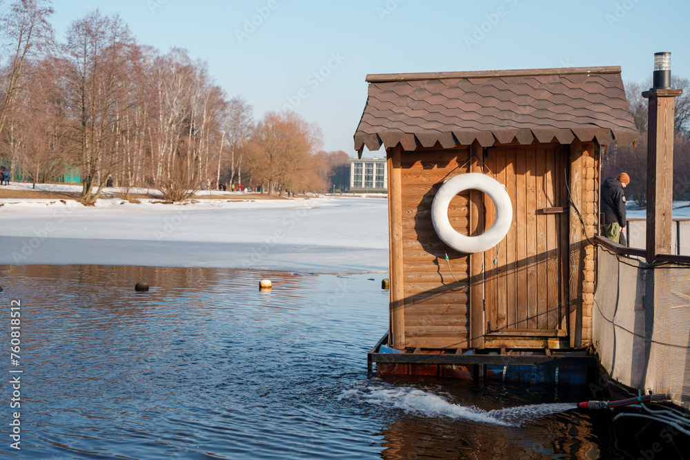 A small pier for fishermen on the lake. Saint Petersburg, Russia - 9 March 2024