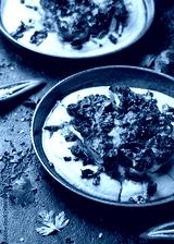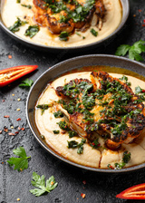 Cauliflower steaks with chimichurri sauce and butter bean puree
