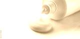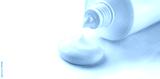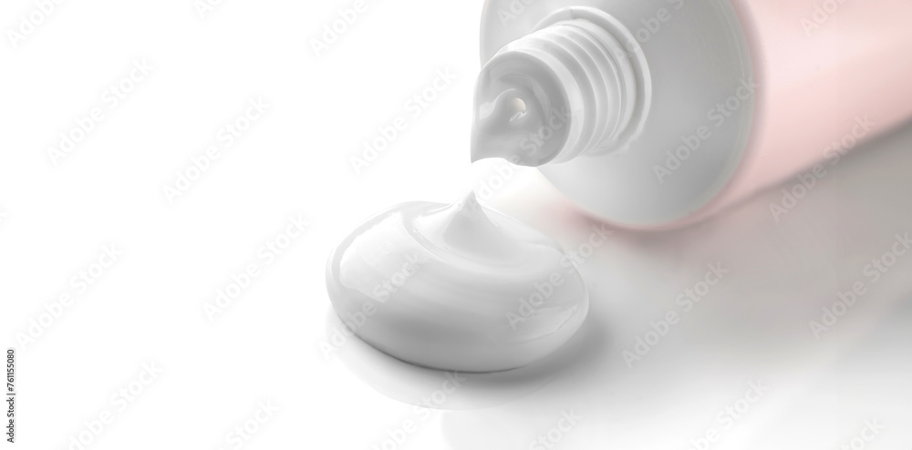 Cosmetic cream tube and product squeezed cream texture on white background
