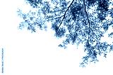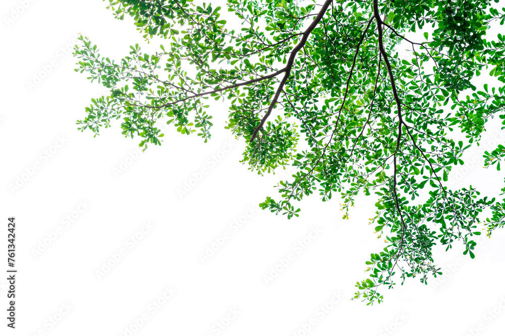 Tree branch and green leaves isolated on white background