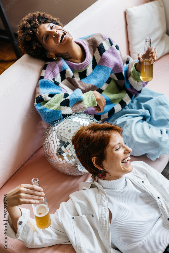 Colleagues relaxing in co-working space with drinks