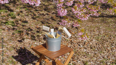 桜と塗装道具|リフォーム・塗装業者・DIY イメージ