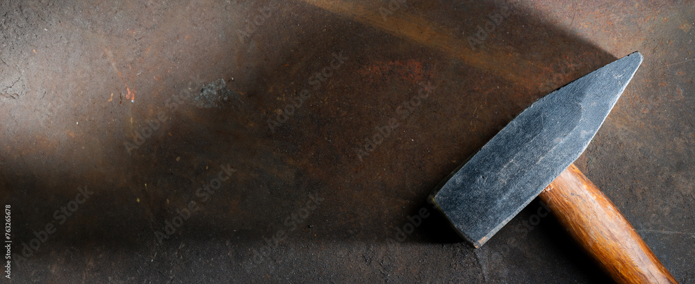 iron with hammer for background .hammer on iron background for banner background with free space for text