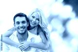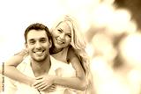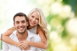 happy couple having fun over green background
