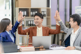 Two confident businessmen shaking hands during a meeting in the office, success, contact, greeting and partnership During a meeting in the office, success, contact, greeting and partnership concept
