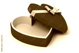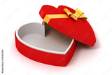 3d heart shape box and bow on white background