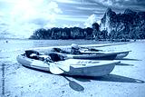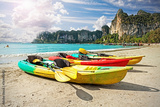 Kayaks on tropical beach, active holidays concept, Railay Beach, Thailand.