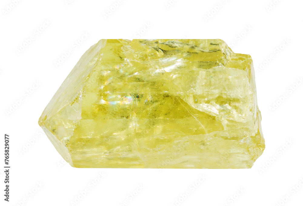 close up of sample of natural stone from geological collection - raw yellow apatite crystal isolated on white background from Mexico